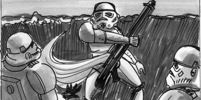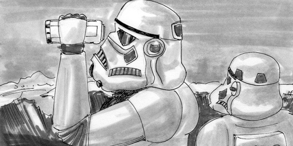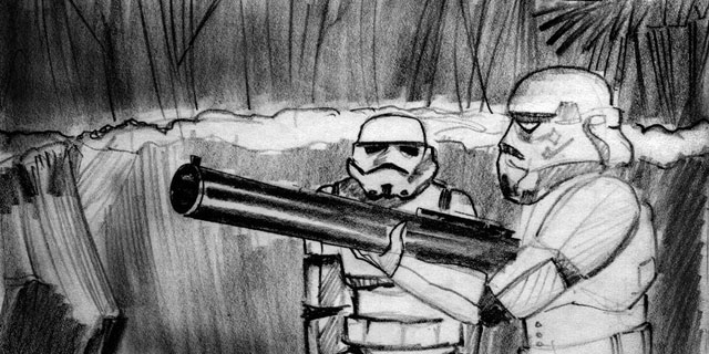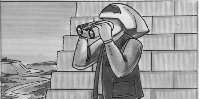 desperate situation begins to sink in on the troopers. Standing, he affixes his data scanner to his belt, and turning